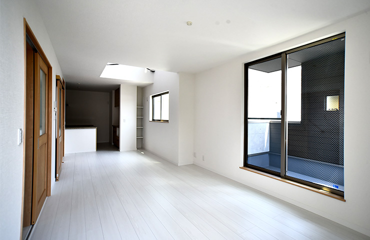 黒と白を基調としたモダンスタイルな外観。 ダイニング上部の吹抜が光と開放感を与えてくれます。